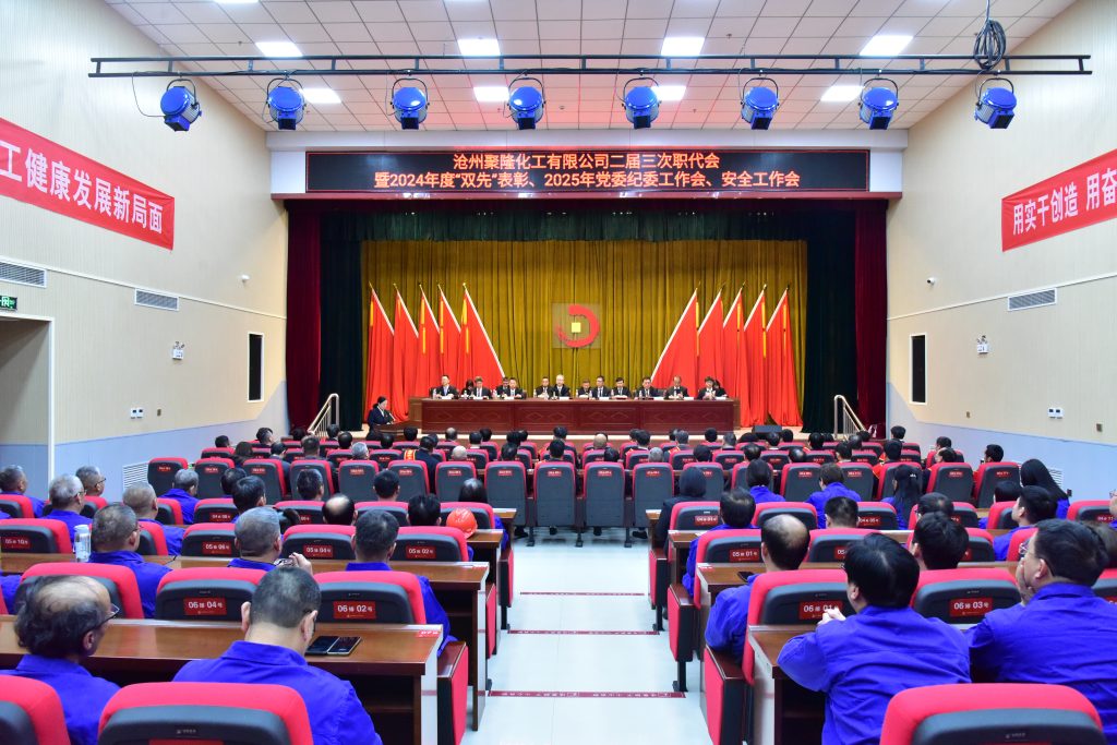 1月6日,聚隆化工二屆三次職代會(huì)暨2024年度“雙先”表彰、2025年黨委紀(jì)委工作會(huì)、安全工作會(huì)隆重召開。會(huì)議的主要任務(wù)是:全面貫徹落實(shí)兩級(jí)兩會(huì)精神,表彰2024年為公司做出突出貢獻(xiàn)的先進(jìn)集體和個(gè)人,總結(jié)2024年工作,部署2025年任務(wù),動(dòng)員全公司上下認(rèn)清形勢(shì),統(tǒng)一思想,凝聚力量,攻堅(jiān)破局。
